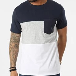 • Tee shirt tricolore en coton avec poche poitrine